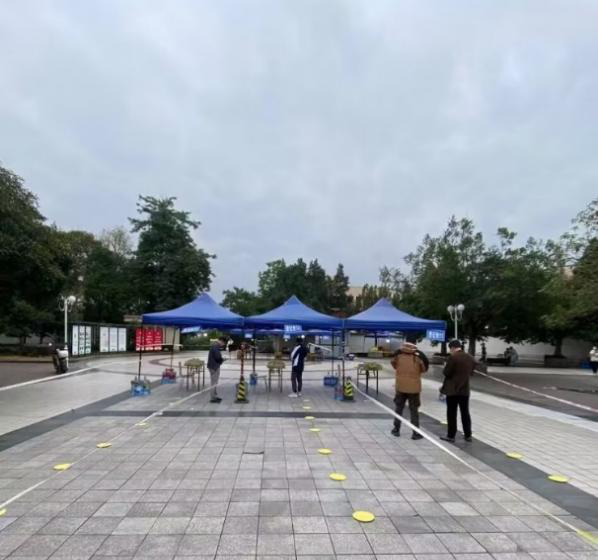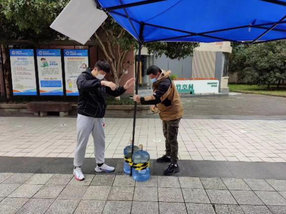 11月11日晚至12日早上,一场暴雨将竹园二区核酸采样点几乎所有的帐篷刮倒在地,一部分甚至损坏不能使用。据他回忆,当时风太大,帐篷根本稳定不住,在公司党委滕超副书记的带领下,他们就地取材,搬了20余桶桶装水固定帐篷,并配合剪刀、胶带、螺丝刀等工具……最终在当前核酸采样时间前成功修复核酸采样点。
