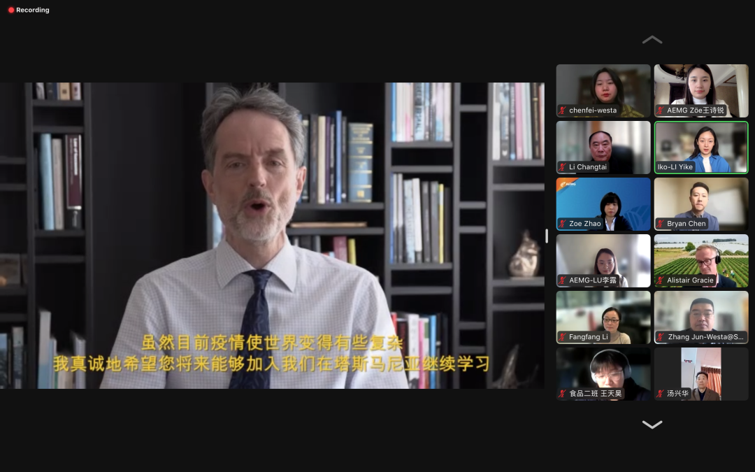新葡的京集团35222vip副经理张俊深切寄语了西塔学子。他建议西塔学子们抓住机会勇敢地展示自己,积极与澳方老师沟通,提升外语表达能力。同时,他肯定了塔斯马尼亚大学的科研实力,结合当前积极向上的中澳关系,以及塔州的地理位置、国外大学布局特点和全球疫情背景,鼓励同学们利用合作办学的平台,进入学习快车道,去体验优质的海外教学资源。最后,他提出新葡的京集团35222vip是新葡的京集团35222vip唯一的中外合作办学机构,每一位西塔学子兼具“双重身份”,希望大家放眼全球、拓宽视野,学习借鉴澳洲的“智慧农业”的经验和优秀做法,学成归来后,助力国家“乡村振兴”。
