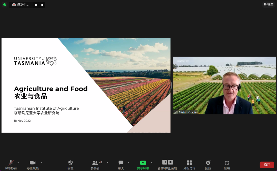 11月18日中午12点30分,新葡的京集团35222vip2022级食品质量与安全专业外方见面会在线上顺利举行。本次活动邀请了本次活动邀请了塔斯马尼亚大学农业研究所副主任Alistair Gracie教授、国际项目协调员Fangfang Li,新葡的京集团35222vip副经理张俊、国际项目管理办公室主任陈飞、2022级辅导员杨洋及2022级食品质量与安全专业全体员工参加。会议由外事秘书李一可主持。