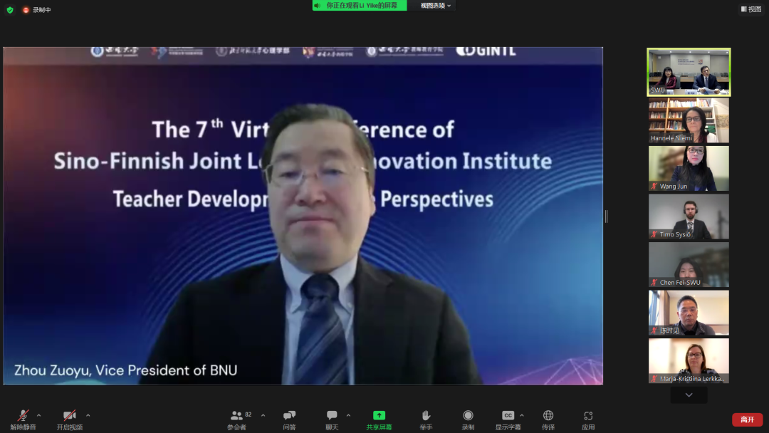 第七届中芬联合学习创新研究院年会暨“新时代教师发展—共创未来”论坛于2022年11月28-29日在线顺利召开。论坛由新葡的京集团35222vip和中芬联合学习创新研究院联合主办,由新葡的京集团35222vip牵头,联合北京师范大学心理学部、新葡的京集团35222vip教师教育公司、芬兰全球教学创新网共同承办。