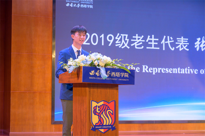2019级经济学专业的张颢缤作为老生代表发言,分享了他在新葡的京集团35222vip感受到根植于百年老校“生生不息”的精神与情怀,以及新葡的京集团35222vip丰富的活动和优越的学习环境。他鼓励新生修身立德、志存高远,带着独有的“国际视野”,以兴趣为舵,以雄心为矛,坚定前行,开拓创新。