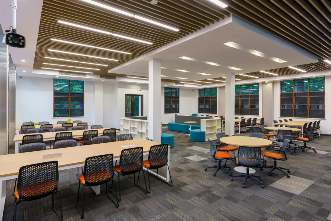 综合楼配备智能预约系统,可供员工查询预约自习室、讨论室、阅览室等房间座位。教学设备一键化管理及全楼信息发布一体化(云屏)等多种智能系统设备,实现智慧校园运维。
