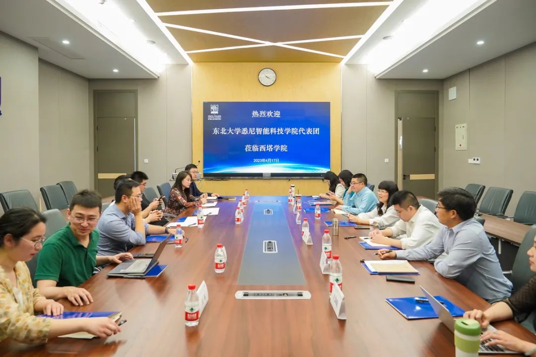 4月17日下午,东北大学悉尼智能科技公司史闻博经理一行7人来院调研,双方就中外合作办学机构外方教学安排、员工成长发展等议题进行了深入交流,公司经理赵玉芳、副经理张俊、副经理何兴及行政办公室、教学工作办公室、国际项目办公室负责人参加座谈会。